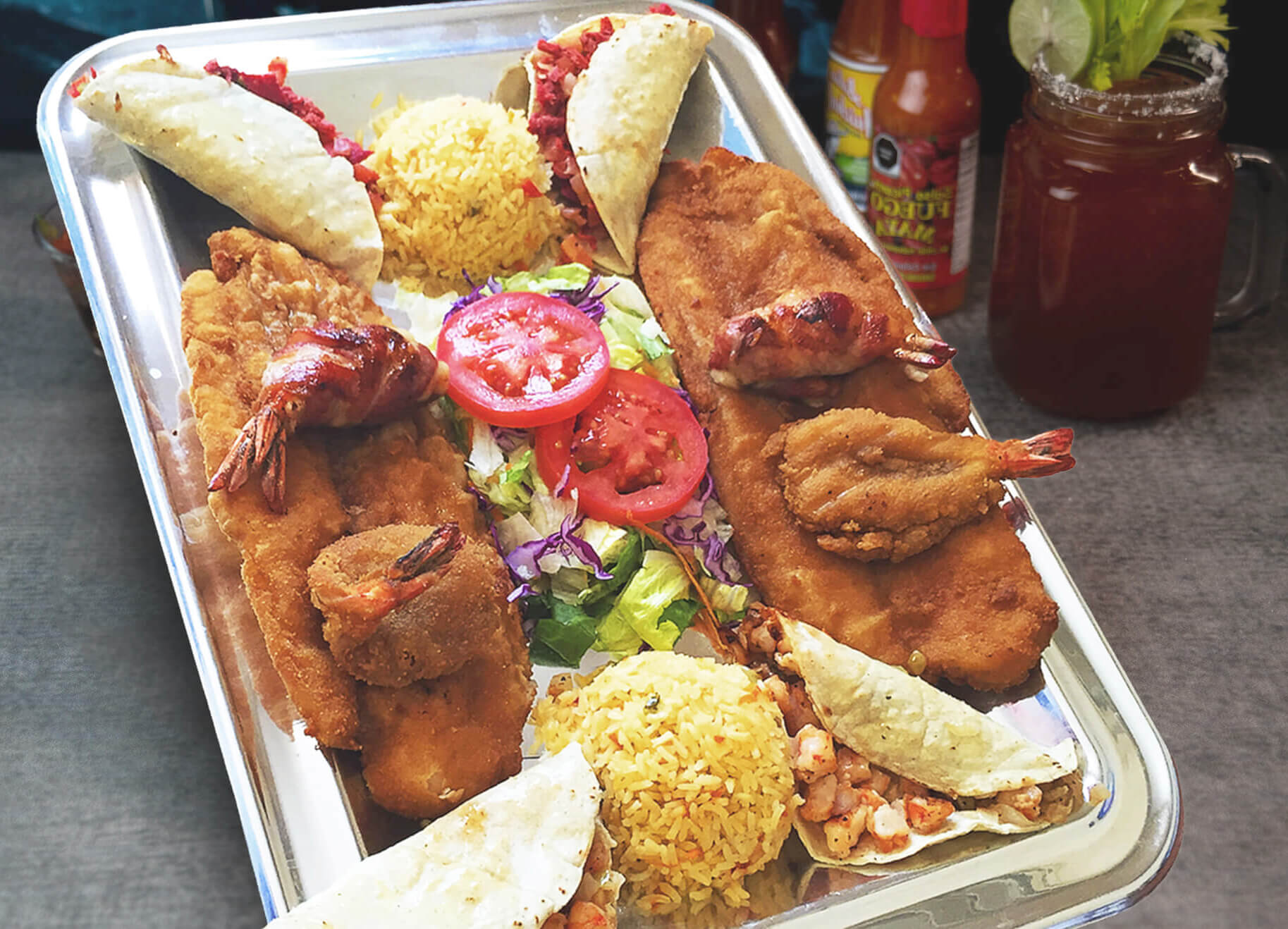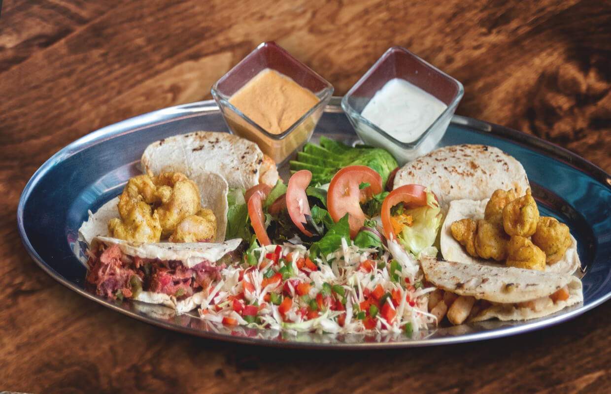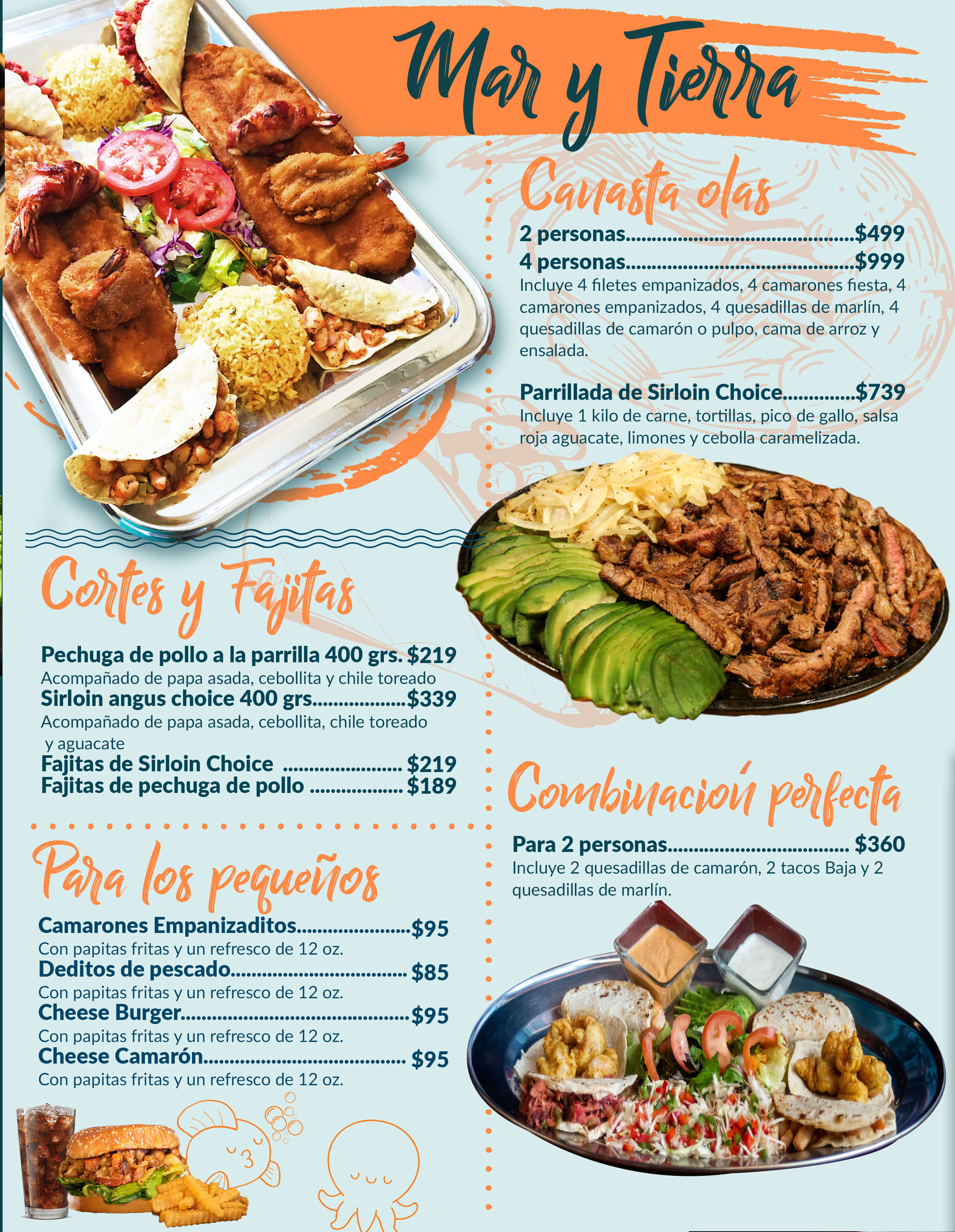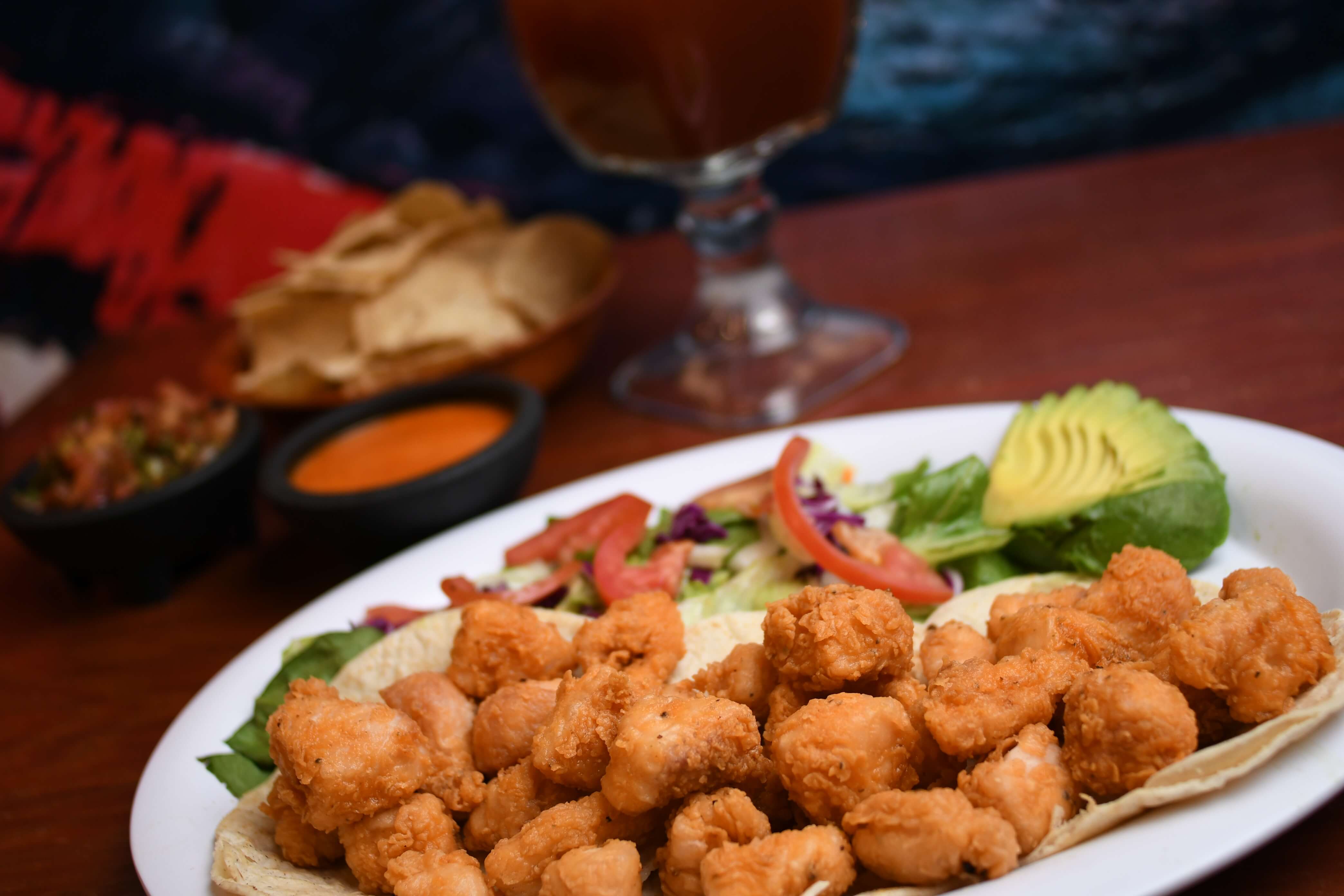 Incluye 2 quesadillas de camarón, 2 tacos Baja y 2 quesadillas de marlín.