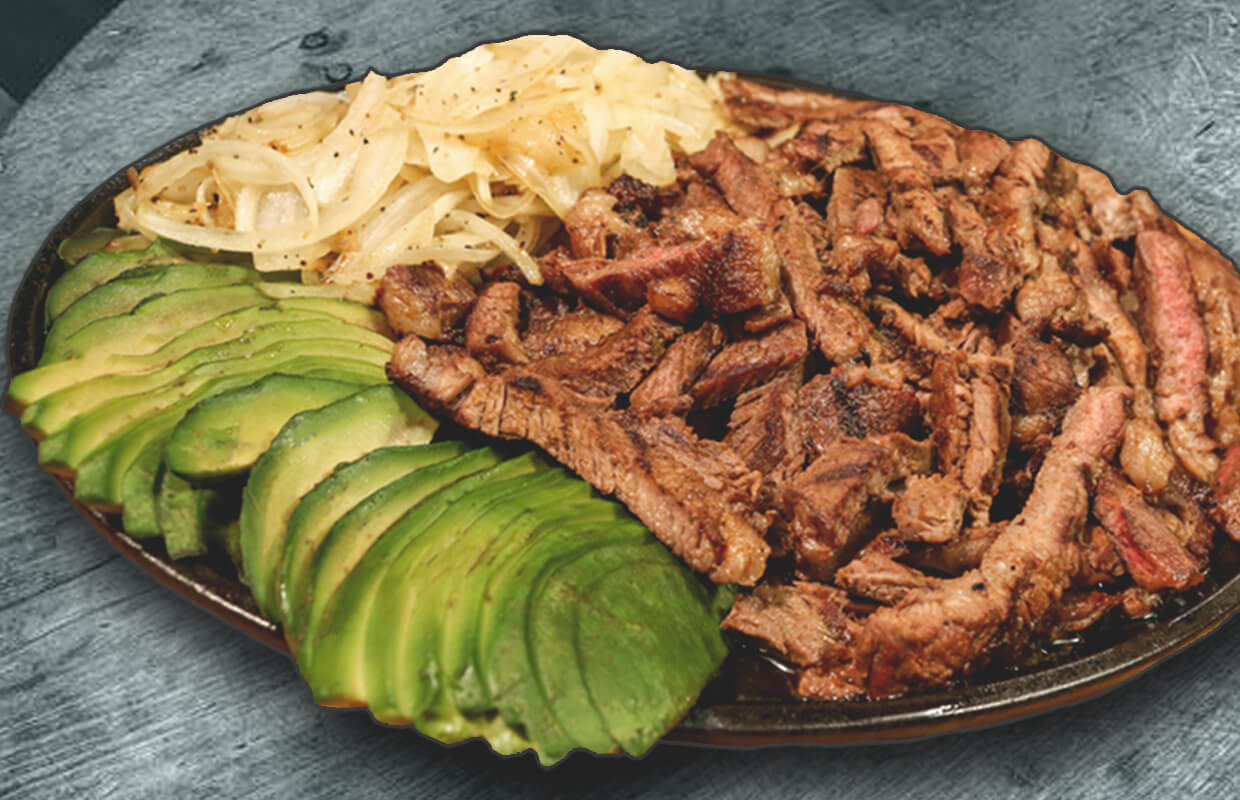 Incluye 1 kilo de carne, tortillas, pico de gallo, salsa roja aguacate, limones y cebolla caramelizada.